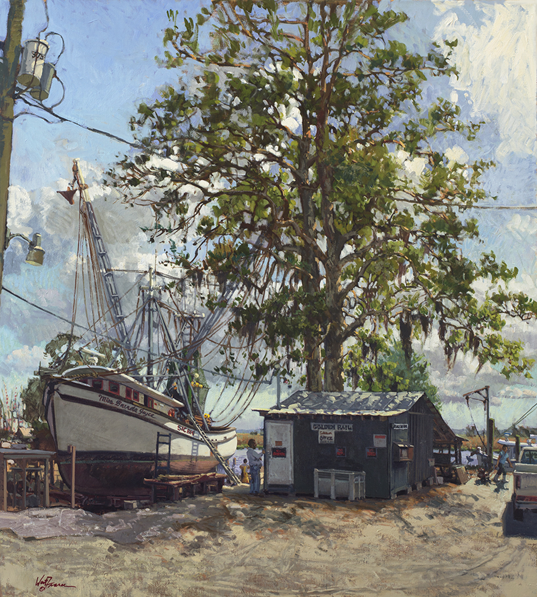 One of many paintings created during the run-up to submitting paintings for Painting the Southern Coast–this represents another area that has been developed now. No longer a boat yard, but a condo building.
